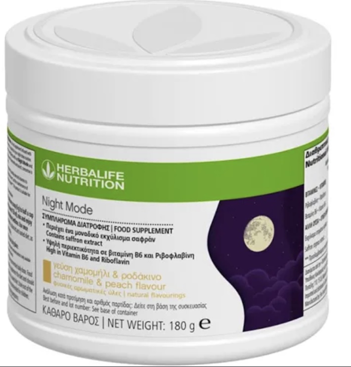 Ένας ποιοτικός βραδινός ύπνος είναι ζωτικής σημασίας για τη συνολική μας ευεξία, καθώς έχει πολλαπλά οφέλη: Βοηθάει στη βελτίωση της σωματικής υγείας επιτρέποντας στο οργανισμό μας να αποκατασταθεί και να αναδομηθεί κατά τη διάρκεια της νύχτας. Βοηθάει στην ενίσχυση της νοητικής μας διαύγειας προάγοντας τη συναισθηματική ισορροπία, η οποία μπορεί να βοηθήσει στη βελτίωση της διάθεσης, με αυξημένα επίπεδα ενέργειας και οξυμένη συγκέντρωση κατά τη διάρκεια της ημέρας. Για να κοιμάστε ποιοτικά, ενσωματώστε το Night Mode στη νυχτερινή σας ρουτίνα. Καθίστε αναπαυτικά, χαλαρώστε και απολαύστε το ρόφημα σας με γεύση χαμομήλι και ροδάκινο. Σημαντικά Χαρακτηριστικά και Οφέλη: Ρόφημα για κατανάλωση πριν από τον ύπνο Περιέχει ένα μοναδικό εκχύλισμα σαφράν, το οποίο είναι επιστημονικώς τεκμηριωμένο ότι βελτιώνει την ποιότητα του ύπνου σε μόλις 7 ημέρες*. Υψηλή περιεκτικότητα σε βιταμίνη Β6 που συμβάλλει στη φυσιολογική ψυχολογική λειτουργία και στη φυσιολογική λειτουργία του νευρικού συστήματος Υψηλή περιεκτικότητα σε ριβοφλαβίνη που συμβάλλει στη φυσιολογική λειτουργία του νευρικού συστήματος και στη μείωση της κούρασης και της κόπωσης Περιέχει χρωστικές ύλες από φυσικές πηγές και δεν περιέχει τεχνητές αρωματικές ύλες Κατάλληλο για vegans Χωρίς γλουτένη Χωρίς ζάχαρη Χωρίς καφεΐνη Χωρίς λακτόζη Οδηγίες Χρήσης: Προσθέστε ένα scoop (6 g) σε μισό φλιτζάνι κρύο ή ζεστό νερό (περίπου 150 ml), ανακατέψτε και απολαύστε το περίπου μία ώρα πριν τον ύπνο. Καταναλώστε μία φορά την ημέρα. Απολαύστε αυτό το προϊόν σε συνδυασμό με μία ισορροπημένη και ποικίλη διατροφή, ως μέρος ενός υγιεινού και δραστήριου τρόπου ζωής. * Τα αποτελέσματα εμφανίζονται συνήθως μετά από 7 ημέρες πρόσληψης 28 mg εκχυλίσματος σαφράν ημερησίως με βάση τα αποτελέσματα κλινικών δοκιμών **Το αποτέλεσμα εμφανίζεται συνήθως μετά από 28 ημέρες πρόσληψης 28 mg εκχυλίσματος σαφράν ημερησίως με βάση τα αποτελέσματα κλινικών δοκιμών